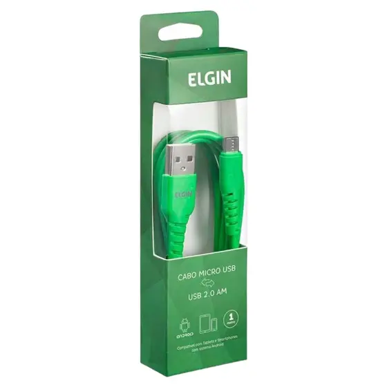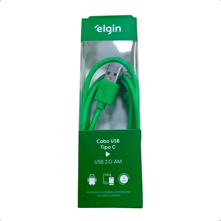 O Cabo USB Tipo C da Elgin, com 1 metro de comprimento e na cor verde, permite a recarga e transferência de dados para seus dispositivos Android. Sua extensão facilita o uso no dia a dia com celulares e tablets compatíveis.