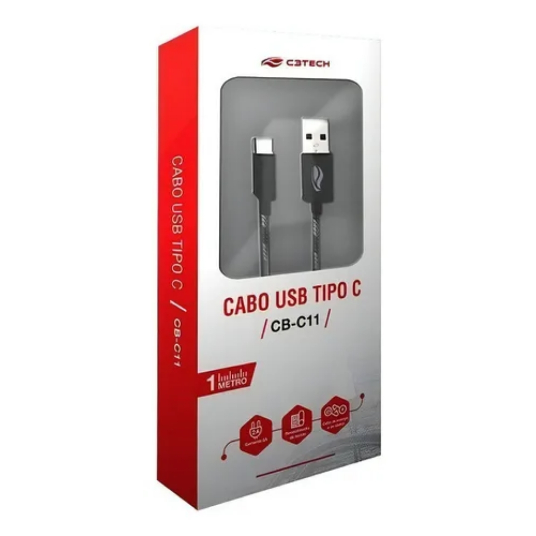 O Cabo de Tecido Tipo C + USB de 1 Metro da C3TECH conecta seus dispositivos com facilidade. Ele permite transferir dados de forma segura e confiável, e também recarrega seus aparelhos com corrente de 2 amperes.