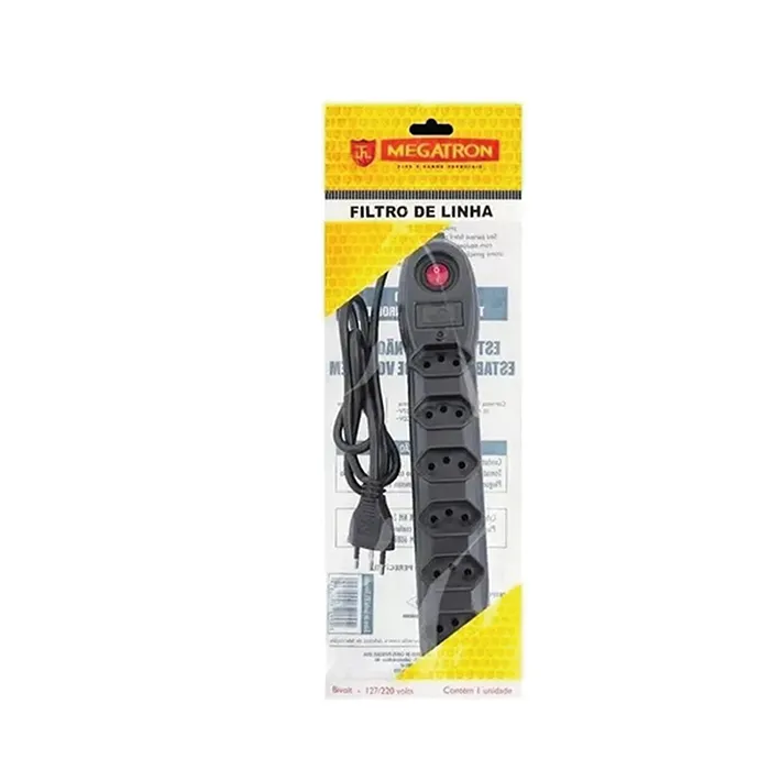 INFORMAÇÕES: Os Filtros de linha Megatron são ideais para proteger equipamentos eletrônicos de curtos e sobrecargas. Podem ser utilizados nas redes 127V e 220V (Bivolt) e possuem uma chave disjuntor (liga/desliga) que é acionada automaticamente na ocorrência de sobrecarga ou curto circuito.