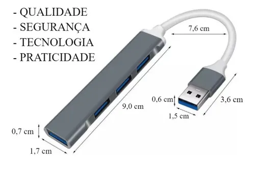 – Uso Versátil: Expande a conexão USB dos seus dispositivos, adicionando 4 portas extras.